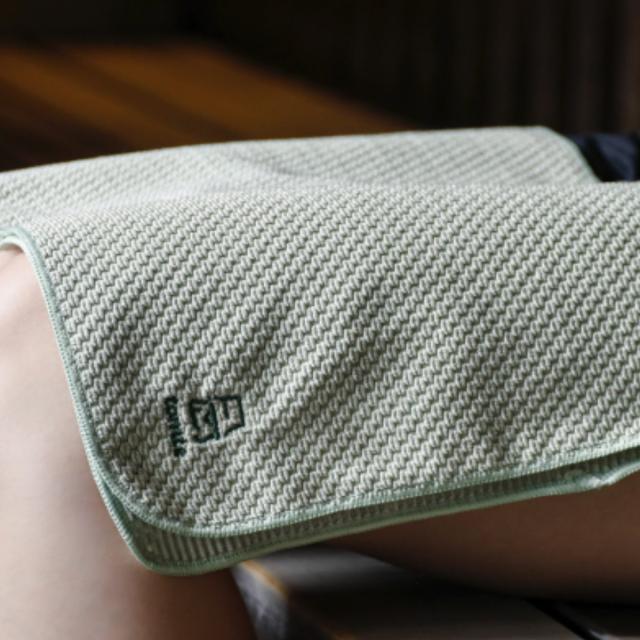 90cm×30cmのスタンダードなサイズのボディタオルです。2つ折りにすると膝掛けにちょうどいいサイズになるため、入浴中だけでなくサウナ中や外気浴時にもお使いいただけます。