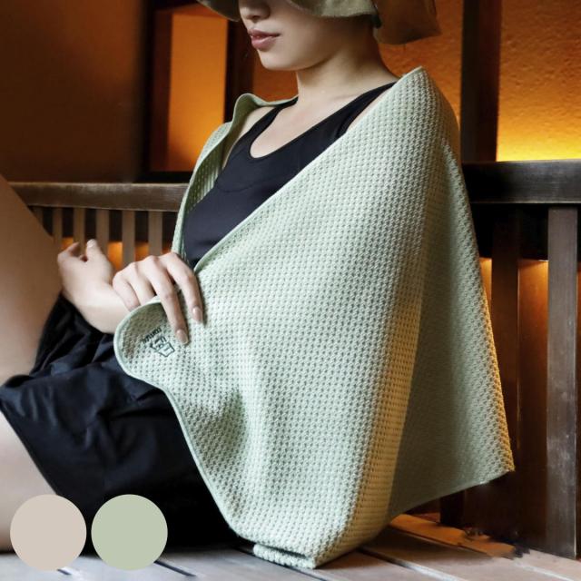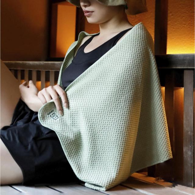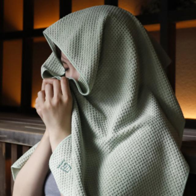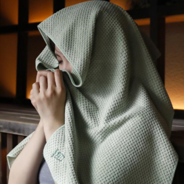 頭に被ったり背中に羽織ったりして使える大きめのタオルです。綿タオルの約2倍の吸水力があるため、サウナで汗をかいてもしっかり拭き上げられます。
