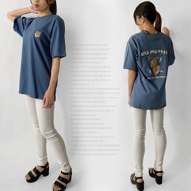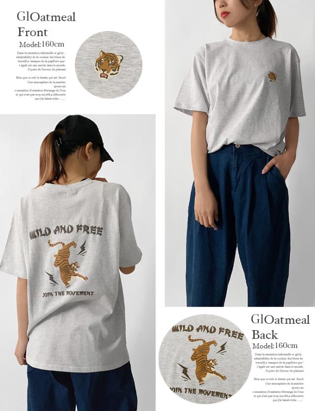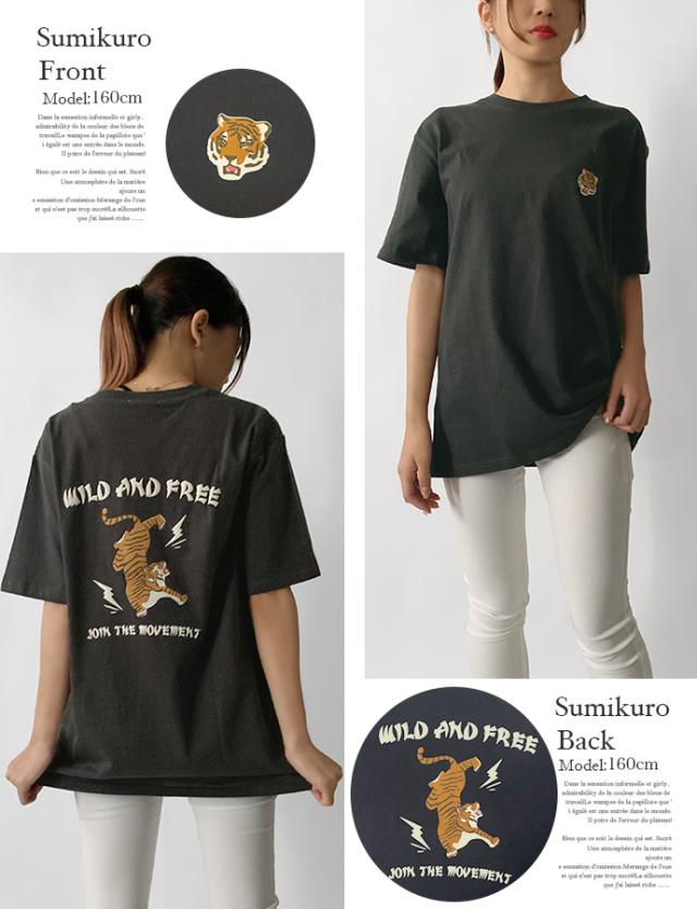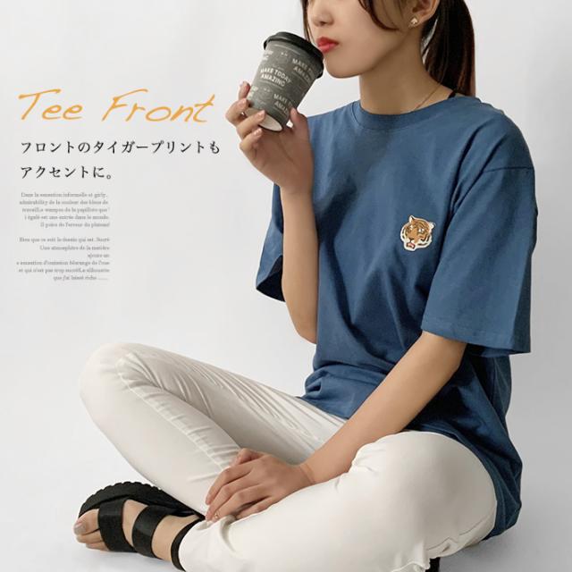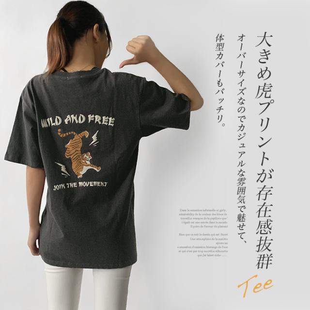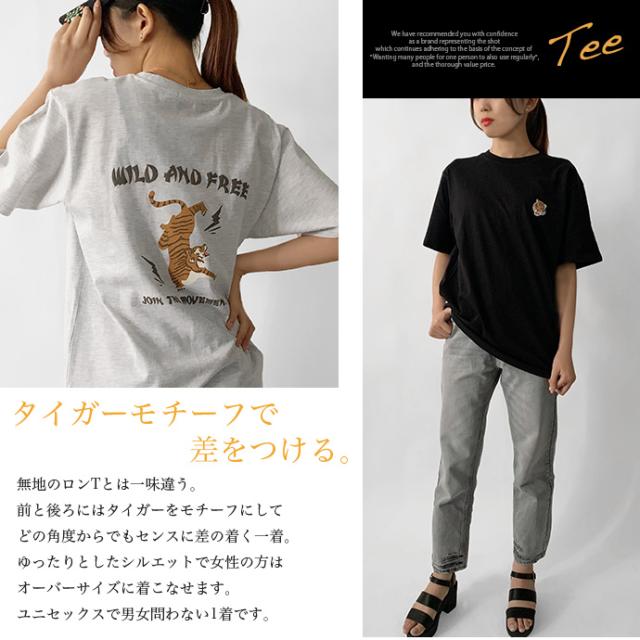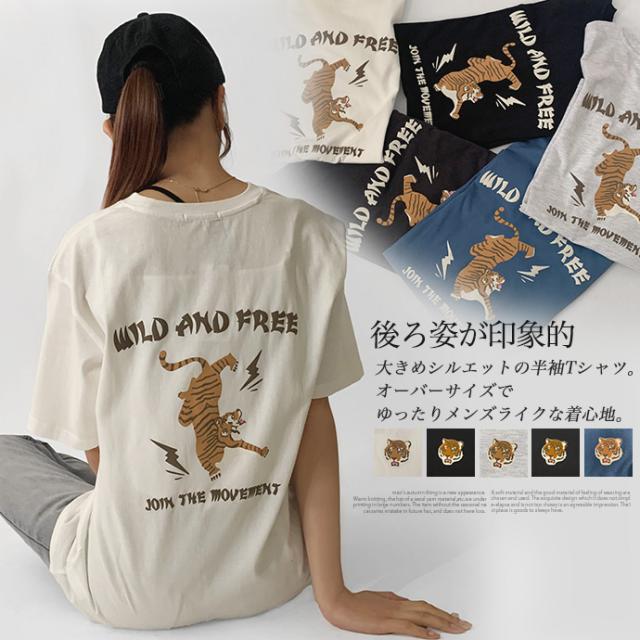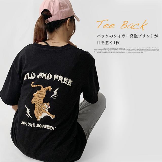 Tシャツ トップス レディース 半袖 コットン 天竺 バックプリント ワッペン 虎 タイガー 発砲プリント ゆったり オーバーサイズ ユニセックス 男女兼用 送料無料