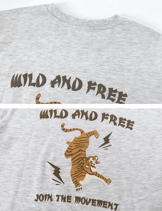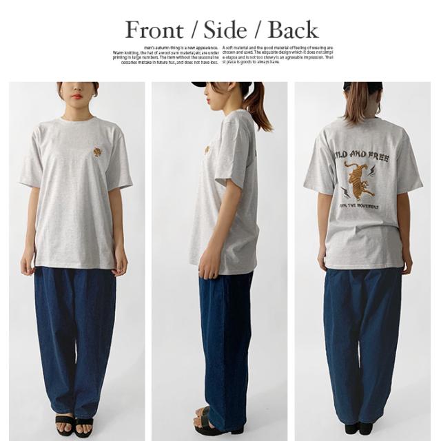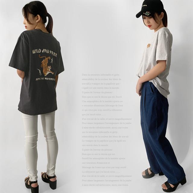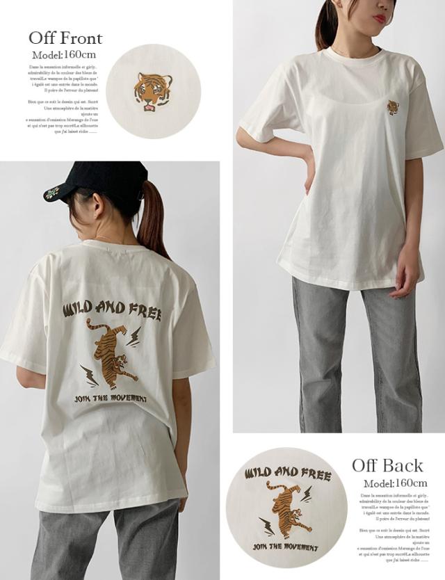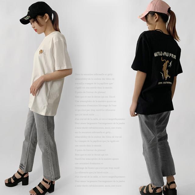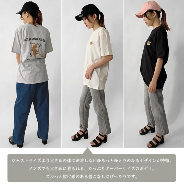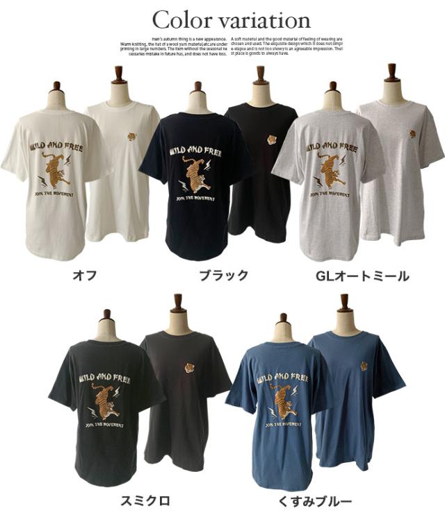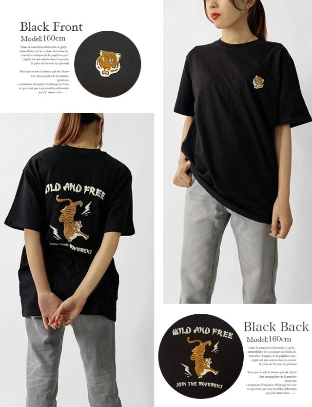 Tシャツ トップス レディース 半袖 コットン 天竺 バックプリント ワッペン 虎 タイガー 発砲プリント ゆったり オーバーサイズ ユニセックス 男女兼用 送料無料