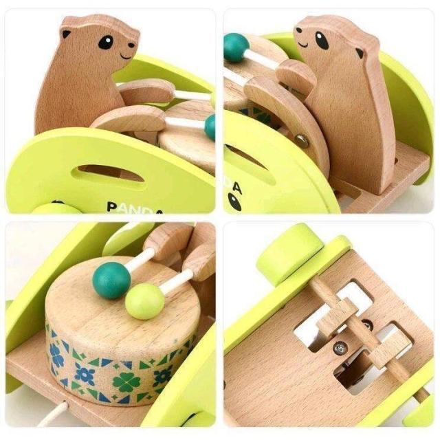 『ぽこぽこパンダさん 木のおもちゃ』ひもを引っ張るとかわいらしいパンダさんが、太鼓をぽこぽこたたきながら行進する木のおもちゃです。「ポコポコパンダさん」の名の通り、パンダさんが太鼓をポコポコたたいて鳴らします。木のぬくもりを生かし、飽きのこないシンプルなデザインに仕上げました。木目の美しさを最大限に生かしつつ、ビビッドなのに上品なカラーを指し色に使用。