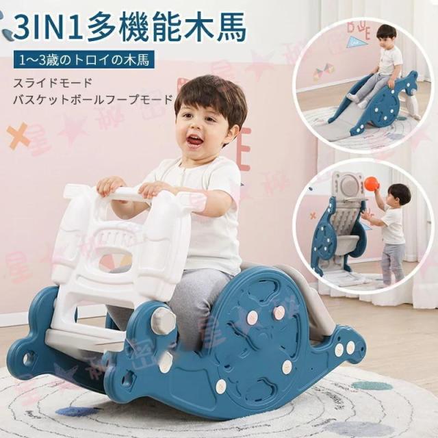 すべり台 滑り台 木馬 3in1 乗り物 乗用 バスケットゴール コンパクト 室内 室外 室内遊具 屋外遊具 赤ちゃん ベビー 幼児 子供