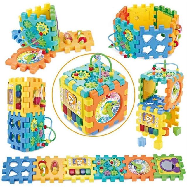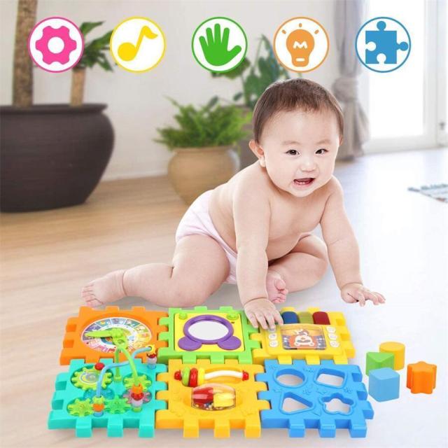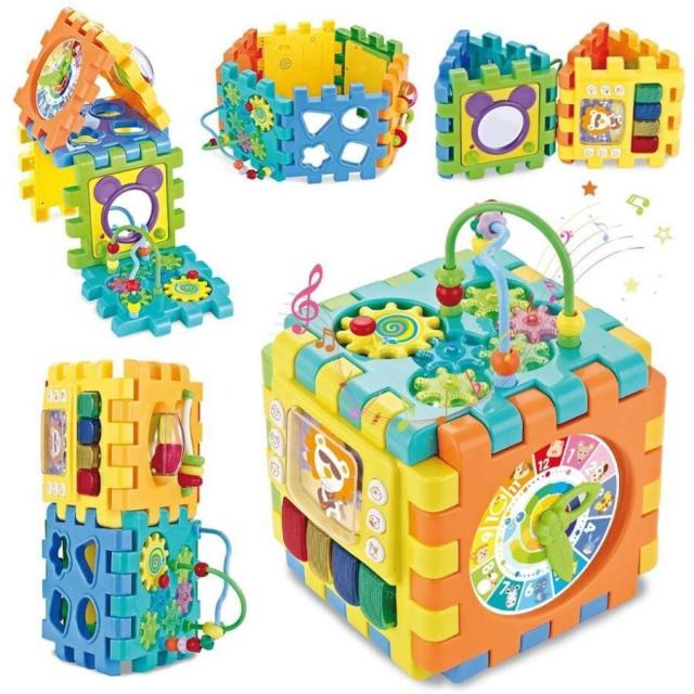 おもちゃ箱 赤ちゃんおもちゃ 多機能 形合わせ 知育玩具 ビーズコースター 音と光 立体 パズル 楽器おもちゃ ブロック 6面に12種遊び 早期開発 指先訓練 聴覚発達 色認知 動物認知 図形認知 おもちゃボックス 入園祝い 誕生日のプレゼント クリスマス ギフト