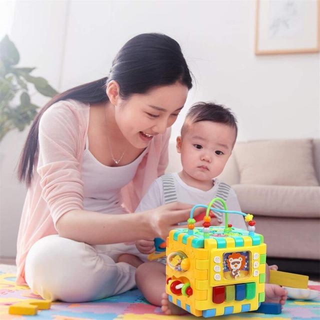 赤ちゃんおもちゃ 6面に12種遊び 6ヶ月から 多機能おもちゃ箱 知育玩具 形合わせ ビーズコースター 音と光 早期開発 指先訓練 聴覚発達 色認知