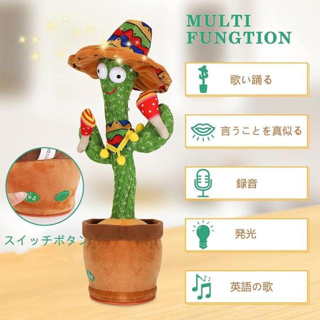 動くサボテン/踊るサボテン/真似するぬいぐるみ 録音、リピート、発光、ダンス、歌の機能が含まれています。