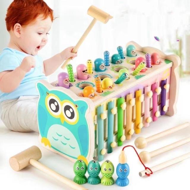 魚釣り;ハンマートイ;回せる歯車;虫捕り;叩きピアノ【マルチな知育玩具です】