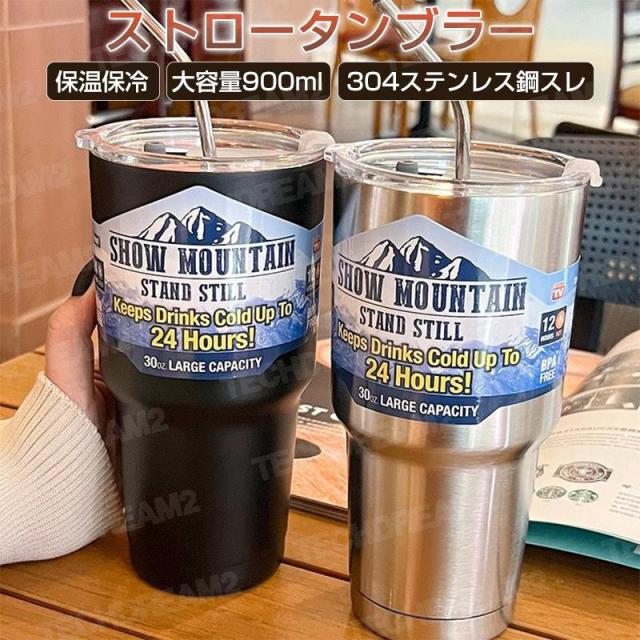 タンブラー ふた付き ストロー付き おしゃれ 保温 保冷 ストロー付き水筒 真空断熱 900ml 水筒 マグボトル コーヒーカップ タンブラー 蓋付き