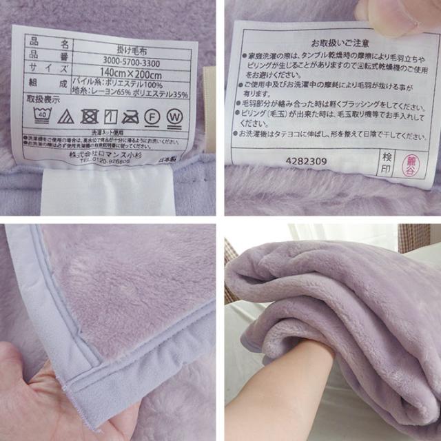 - 軽くてあたたかい毛布を探していました 手頃な値段と日本製なのが購入の決め手になりました 届いた毛布は軽くてふわふわ パープルを選びましたが落ち着いていてとても綺麗な色合いです