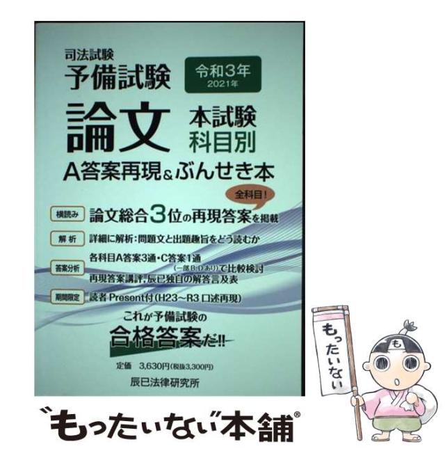 【中古】 司法試験予備試験論文本試験科目別・A答案再現&ぶんせき本 令和3年 / 辰已法律研究所 / 辰已法律研究所 [単行本]【メール便送料無料】