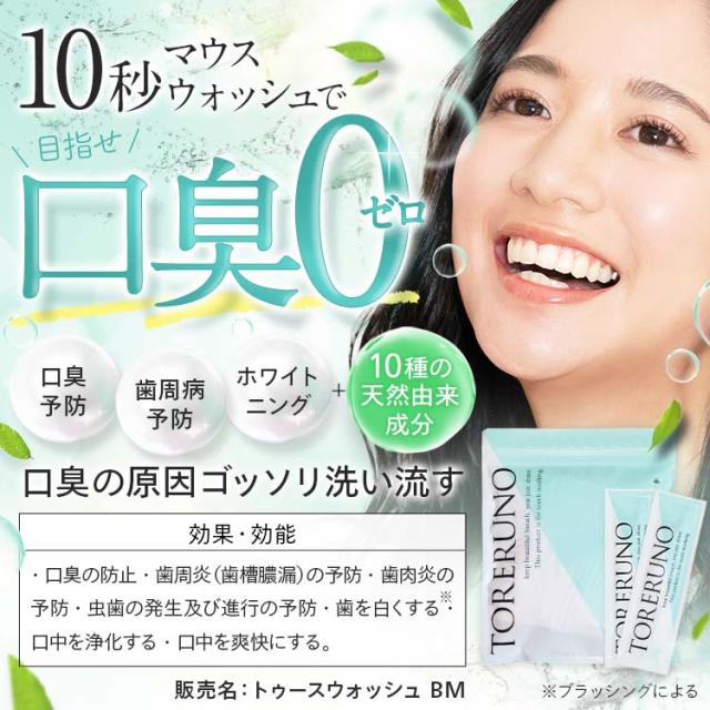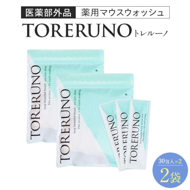 【公式】お買い得2袋セット TORERUNO(トレルーノ) マウスウォッシュ トゥースウォッシュ 30包 口臭 ホワイトニング 美白 オーラルケア 虫歯 黄ばみ 歯周病 薬用 医薬部外品 アップルミント 送料無料