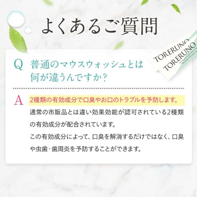 | 名称 | 薬用マウスウォッシュ TORERUNO(トレルーノ) |