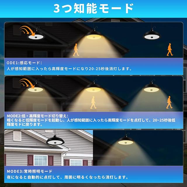 - センサーで点灯し(モードあり)明るくて また見た目も良くて買って正解でした。 電気代もかからず最高です! 570125512