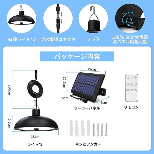 ソーラーパネル部分とライト部分が分けているので、ソーラーパネルは日当たりの場所に設置して、ライトは屋内でも点灯できます。一体型に比べて、設置場所が幅広くなります。リモコンが付いて、使わない際に電源消しができます。