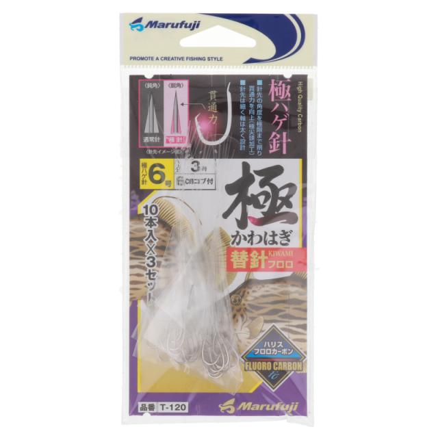 まるふじ 極かわはぎ替針フロロ 針6号-ハリス3号 T-120【ゆうパケット】