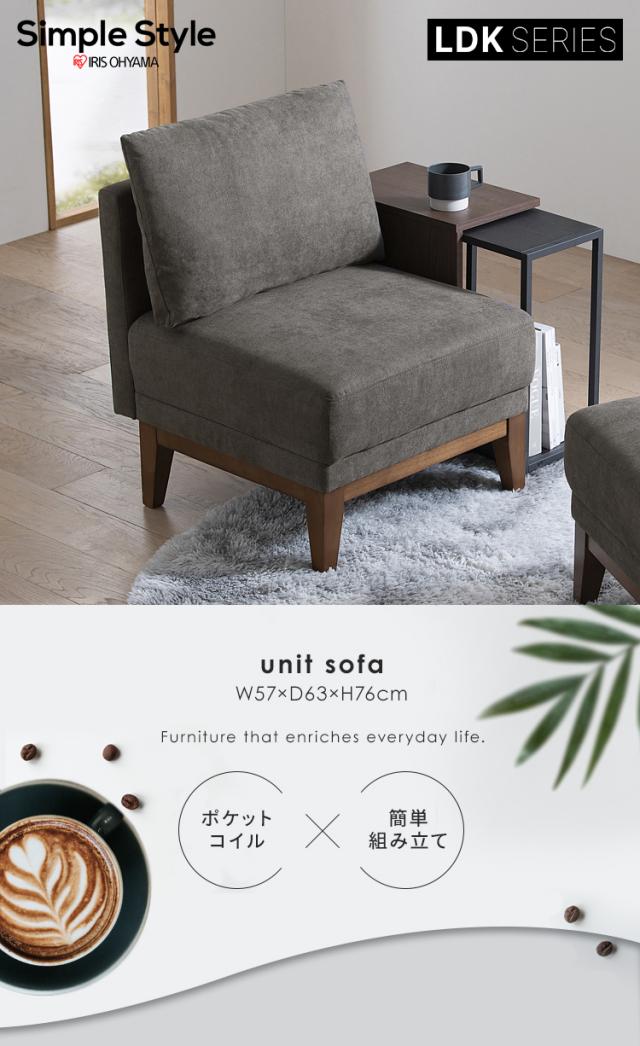 ソファー 一人掛け ローソファー ユニット フロアソファ 一人用ソファー ソファ ひとり用 クッション付き 椅子 北欧 ポケットコイル 連結可能 アイリスオーヤマ UNS-1S *