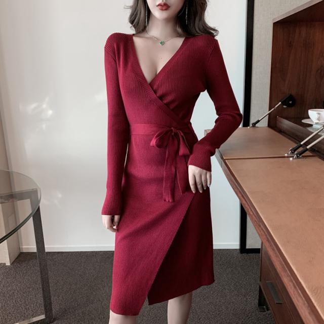 ワンピース ニットソー ミニスカート タイトスカート ひざ丈 長袖 Vネック 襟付き スリム 細身 ストレート ウエストマーク ウエストリボン かわいい 大人可愛い きれいめ シンプル カジュアル 大人 上品 お洒落 かっこいい 大人可愛い 大人女子 こなれ感 個性的 クール モード系 セクシー エレガント 主役級 存在感 柄 花柄 春 秋 冬 誕生日 クリスマス バレンタイン 10代 20代 30代 レディース 女性用 ママ 学生 通学 デート お出かけ 女子会 パーティー イベント ホテル ガーデン