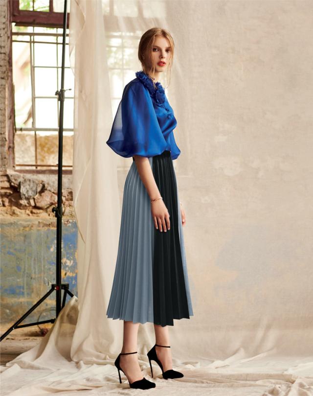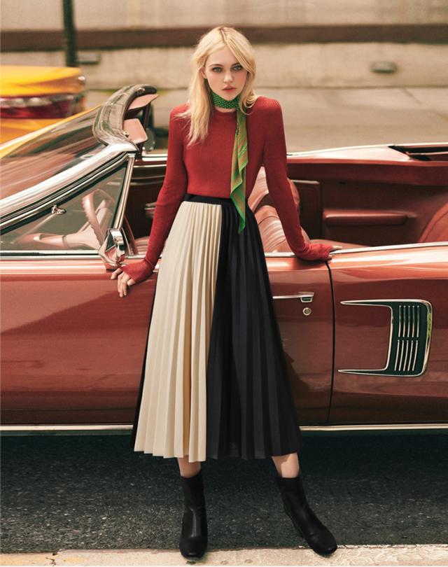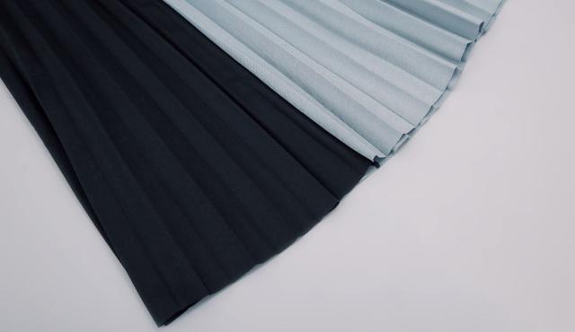 バイカラーがおしゃれなプリーツスカート。