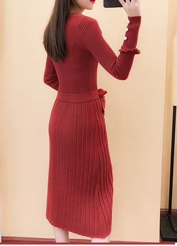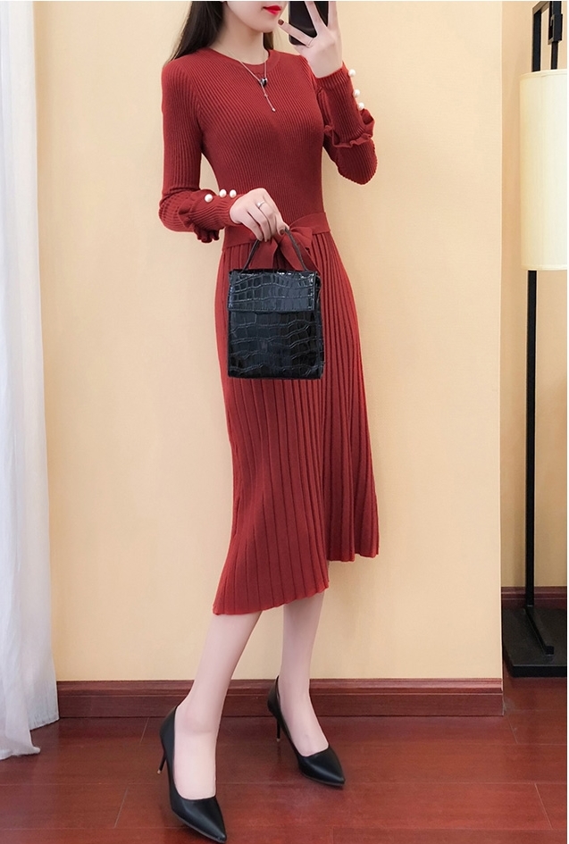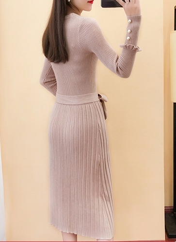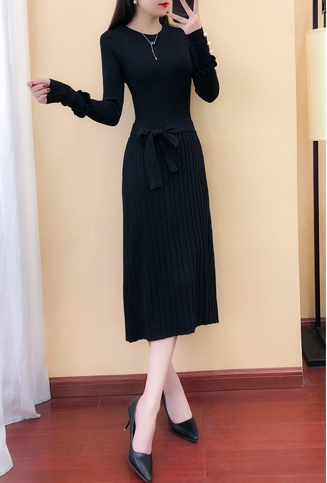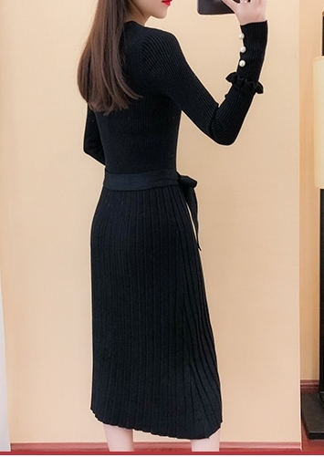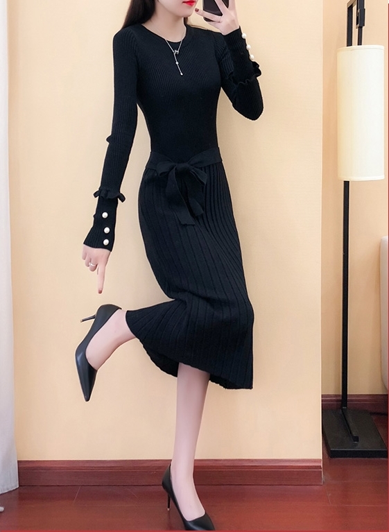 ニットワンピース ベルト付き 袖ボタン ワンピース ニットソー 膝丈 ミモレ ミモレ丈 長袖 飾り袖 Uネック タイト 細身 切り替えデザイン ドッキング リボン ウエストリボン リブニット ニット かわいい 大人可愛い きれいめ シンプル カジュアル 大人 上品 おしゃれ 大人女子 こなれ感 ラブリー ガーリー エレガント お嬢様 清楚 無地 秋 冬 10代 20代 30代 40代 オフィス ビジネス OL 通勤 通学 デート お出かけ 休日 ホテル レストラン 着回し 普段使い 韓国系 ファッション
