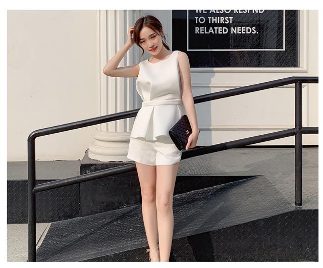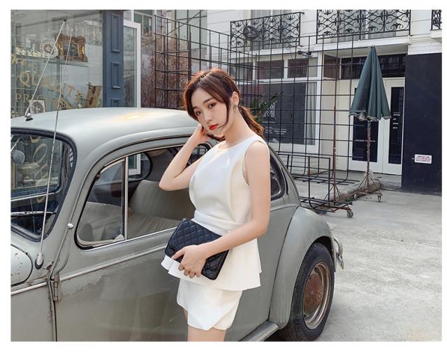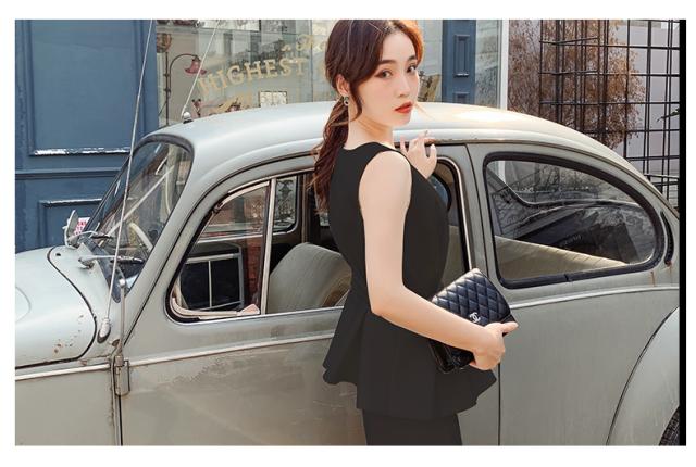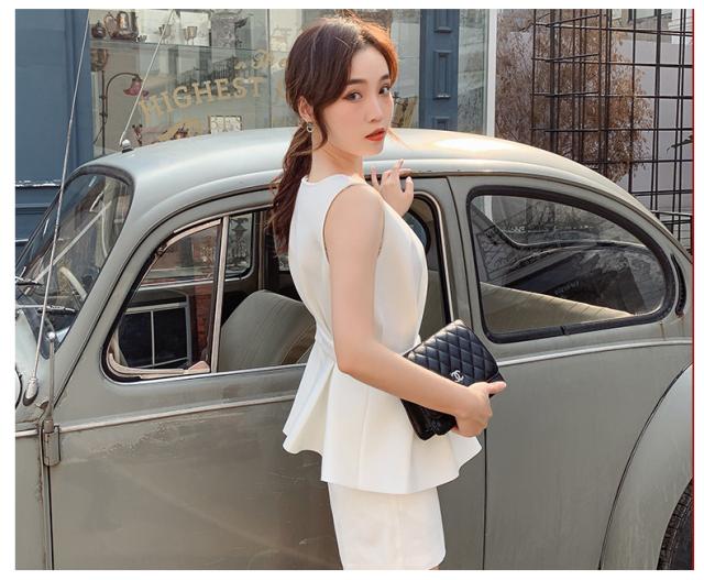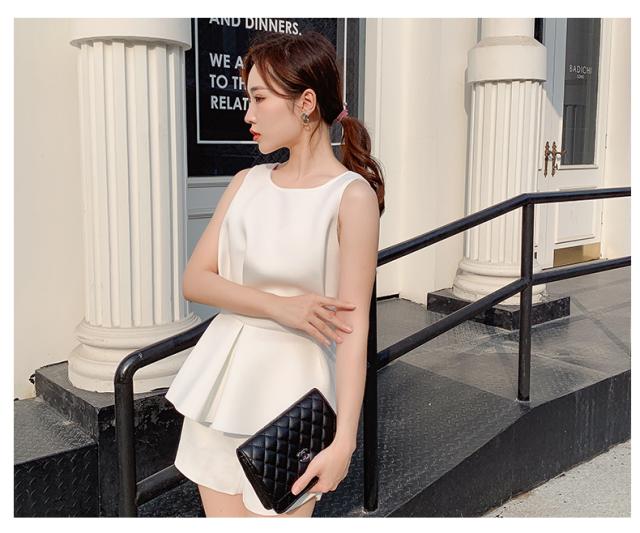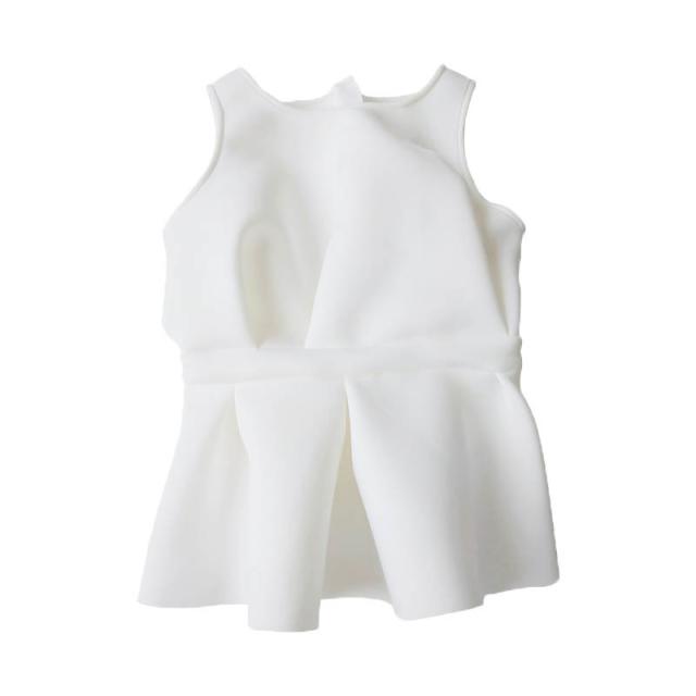 すっきりとしたノースリーブに、ペプラムデザインが目を惹くトップス。