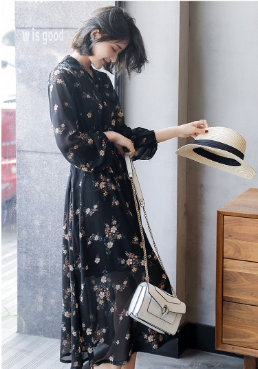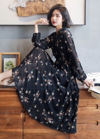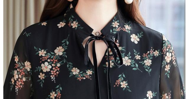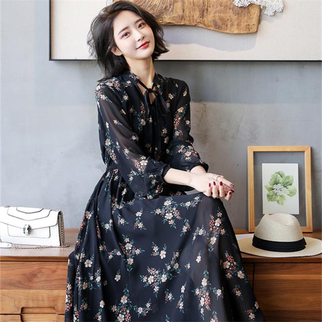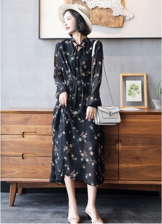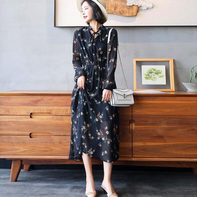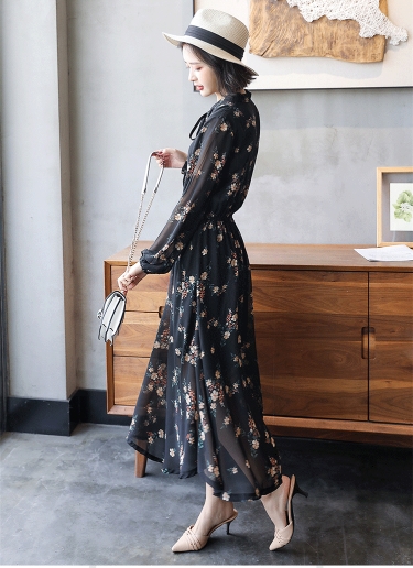 花柄 透け感 ロング ワンピース フレアワンピース ロング丈 マキシ マキシ丈 アンクル丈 袖あり 長袖 ボリューム袖 スタンドカラー フレア セミフレア シフォン リボン ウエストゴム かわいい 大人可愛い きれいめ カジュアル 大人 上品 おしゃれ レトロ 大人女子 ラブリー キュート ガーリー とろみ感 お嬢様 清楚 フラワー 春 秋 10代 20代 30代 40代 通勤 通学 デート お出かけ 女子会 お泊まり 休日 リゾート 着回し 普段使い 韓国系 ファッション 体系カバー トレンド 流行