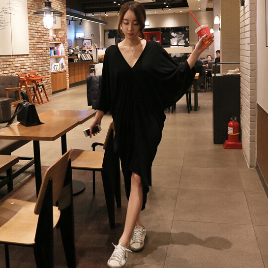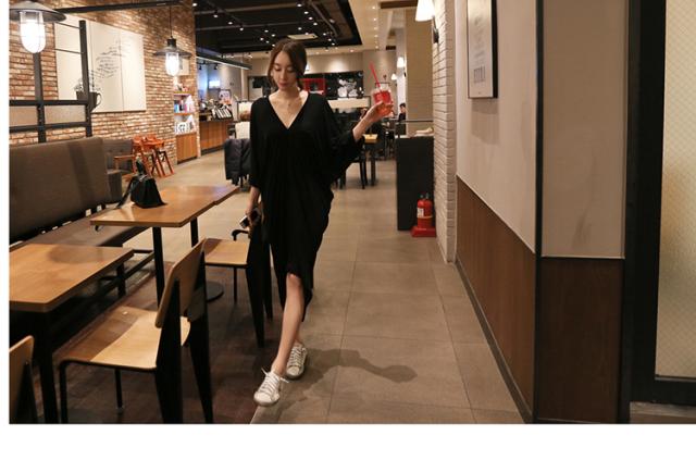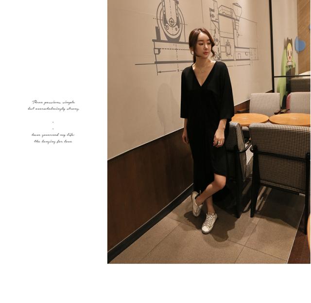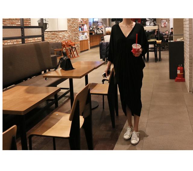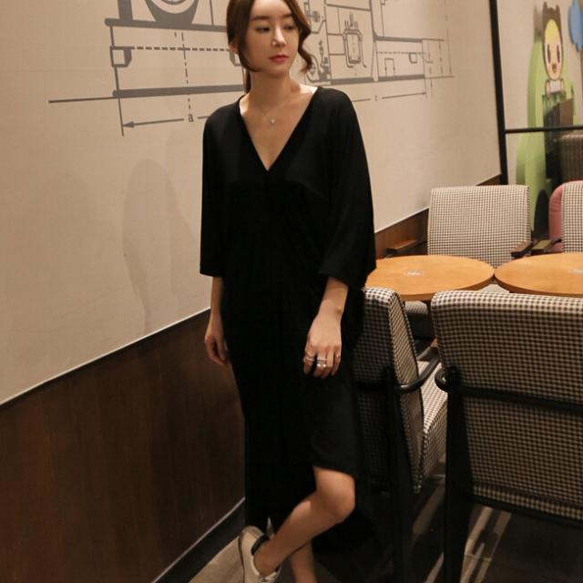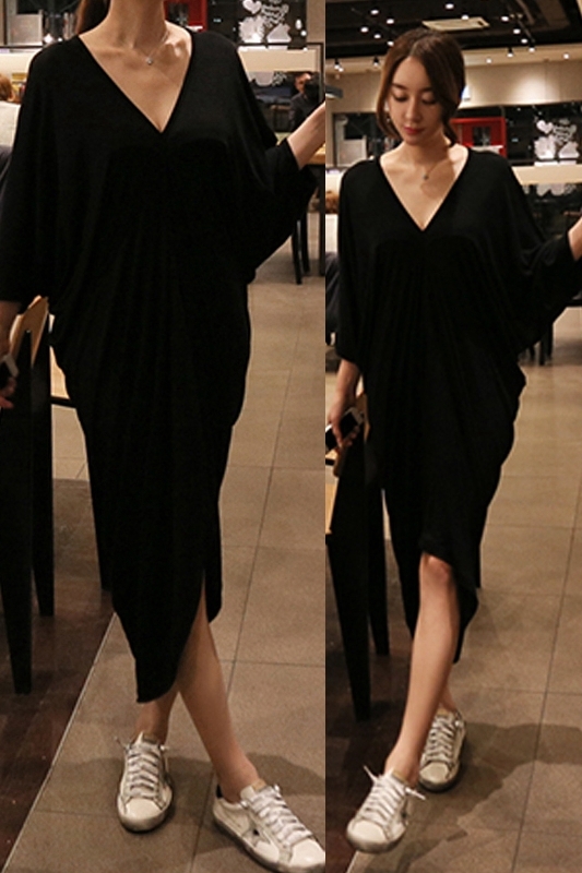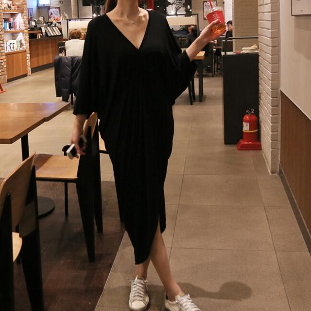Vネックシックワンピース 膝下 スリット 長袖 Vネック 襟なし Iライン かわいい 大人可愛い きれいめ シンプル カジュアル 大人 上品 おしゃれ お洒落 かっこいい レトロ 大人可愛い 大人女子 こなれ感 ラブリー キュート ガーリー 主役級 存在感 とろみ感 抜け感 無地 春 夏 秋 10代 20代 30代 40代 50代 レディース 女性用 OL 通勤 学生 通学 デート お出かけ 女子会 お泊まり 休日 パーティー リゾート ホテル ガーデン 着回し 普段使い 重ね着 お揃い 双子 ブラック