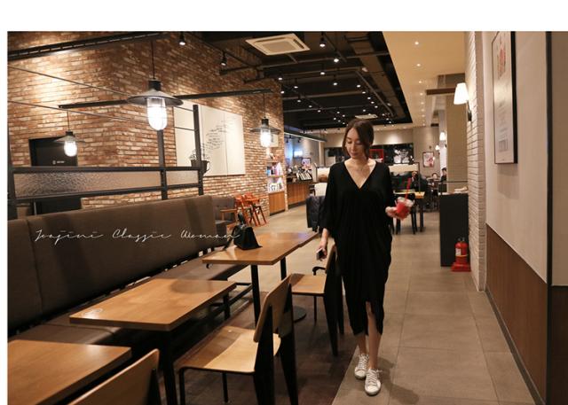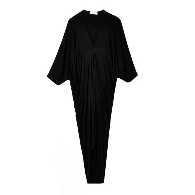 Vネックのブラックワンピース