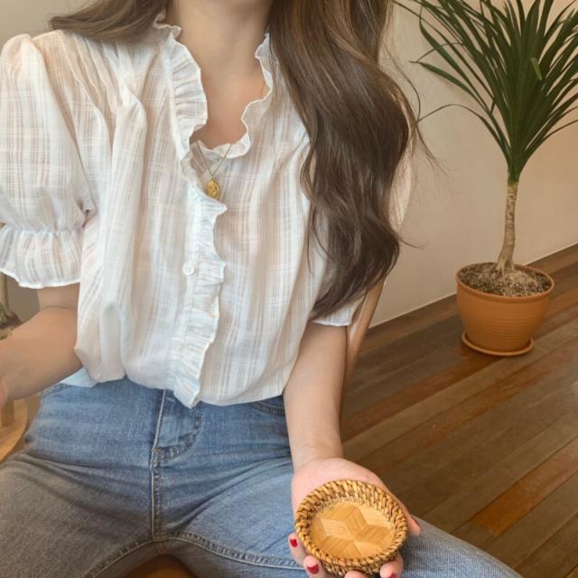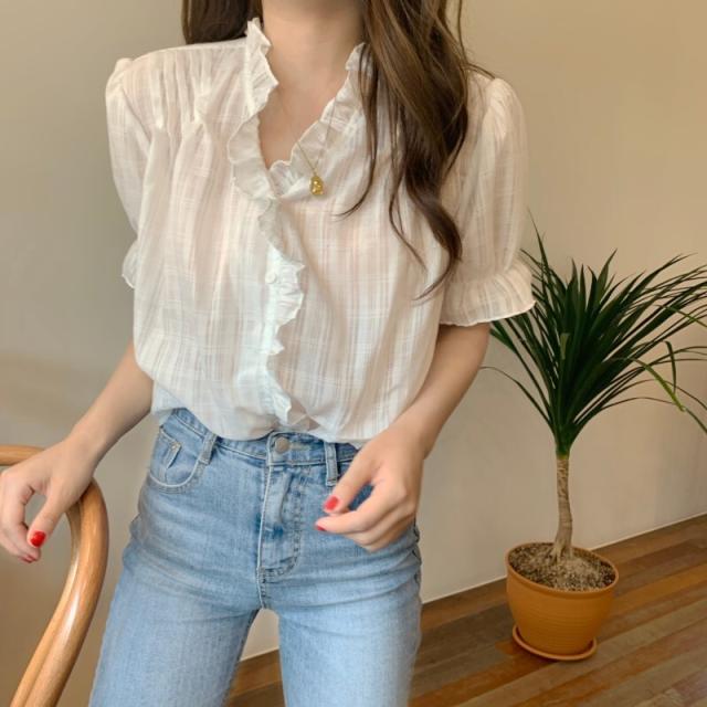ポワン袖 パフスリーブ ブラウス トップス 白シャツ 半袖 ボリューム袖 Vネック カシュクール チュール シフォン フリル 前開き 透け感 シースルー かわいい 大人可愛い きれいめ シンプル カジュアル 大人 上品 おしゃれ 大人女子 ラブリー キュート ガーリー とろみ感 抜け感 チェック柄 夏 10代 20代 30代 40代 50代 60代 レディース 学生 通学 デート お出かけ 女子会 休日 着回し 普段使い 韓国系 ファッション コーデ スタイル モテ S M L 白 ホワイト