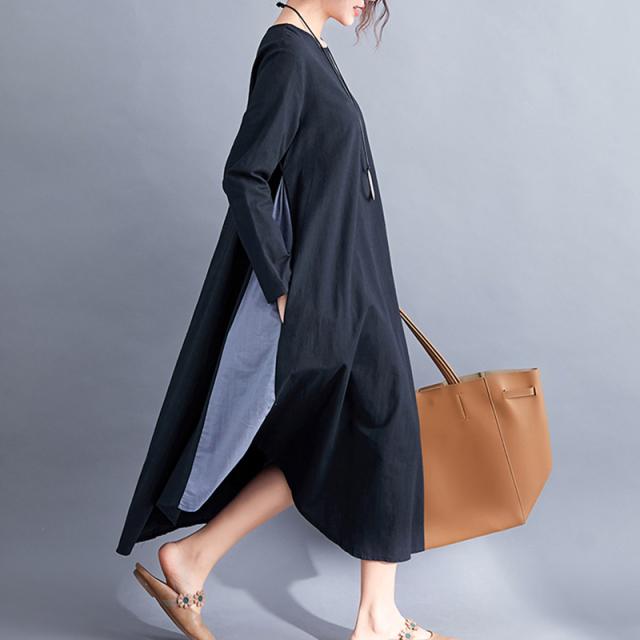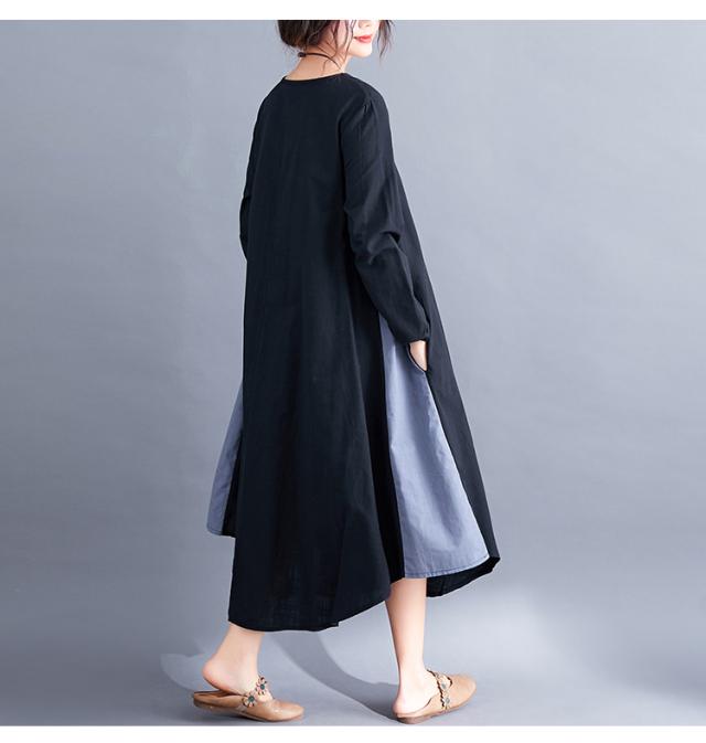 個性的 バイカラー ワンピース ロングスカート シャツワンピース フレアワンピース ロング ロング丈 袖あり 長袖 Uネック ラウンドネック フレア Aライン ポケット かわいい 大人可愛い きれいめ シンプル カジュアル 大人 上品 おしゃれ 大人女子 こなれ感 ラフ 個性的