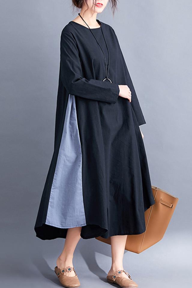 サイドのバイカラーデザインがおしゃれなAラインワンピース。