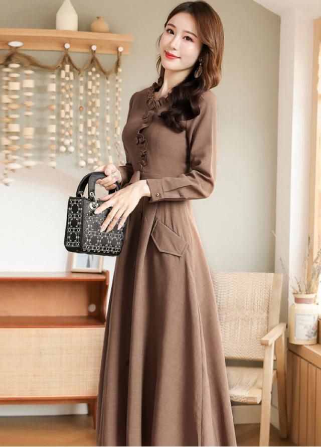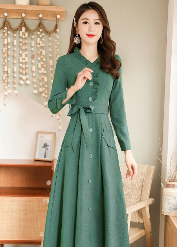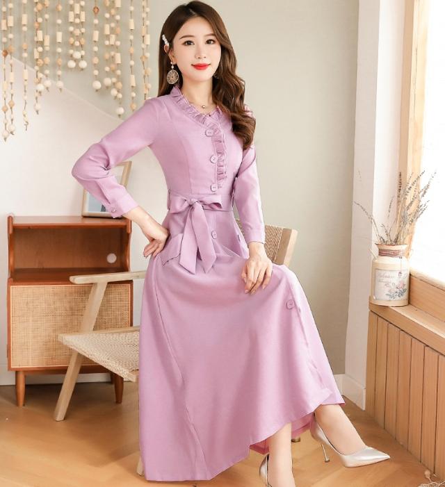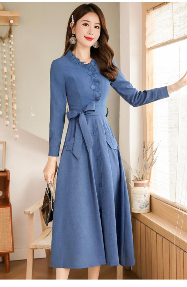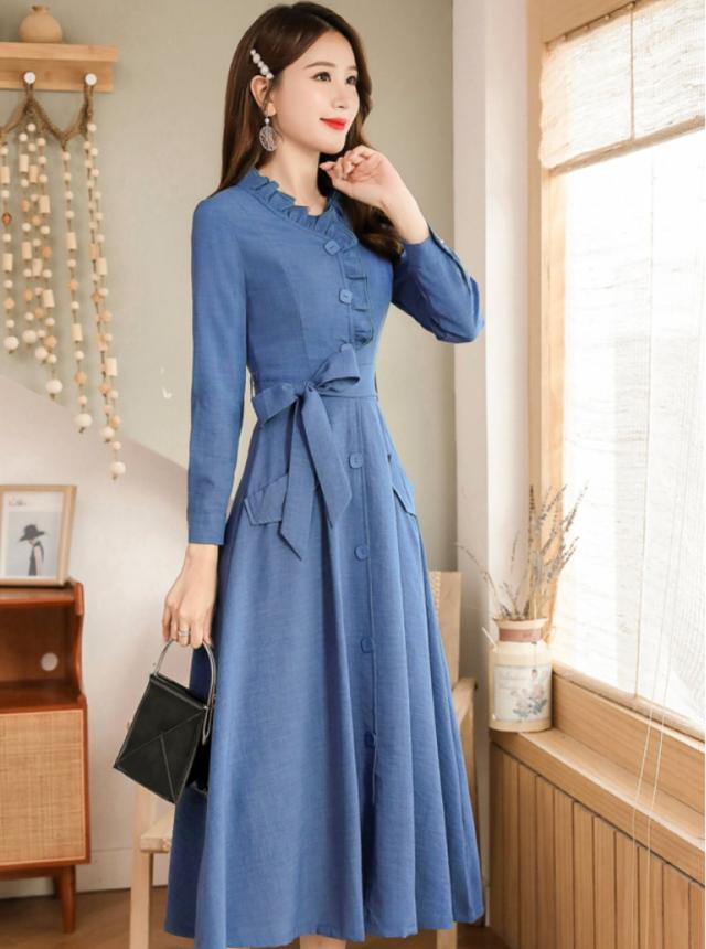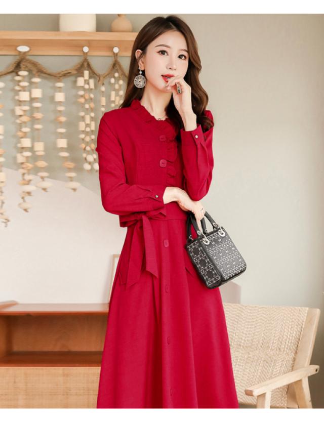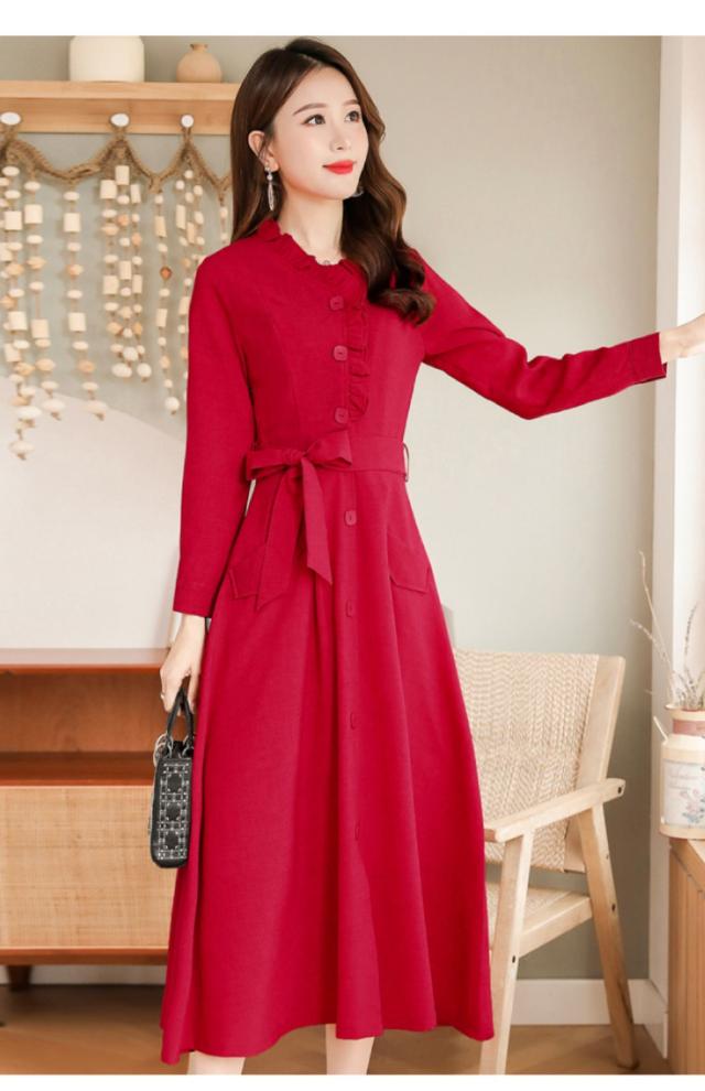 ウエストリボン フリルネック フレア ワンピース フレアワンピース ロング ロング丈 袖あり 長袖 スタンドカラー セミフレア Aライン フリル リボン 前開き かわいい 大人可愛い きれいめ シンプル カジュアル 大人 上品 おしゃれ レトロ 大人女子 こなれ感 ラブリー キュート ガーリー エレガント モダン フォーマル 清楚 お嬢様 無地 春 秋 冬 入学式 入園式 卒業式 卒園式 お呼ばれ 10代 20代 30代 40代 デート お出かけ 休日 ホテル レストラン M L XL 2XL 3XL