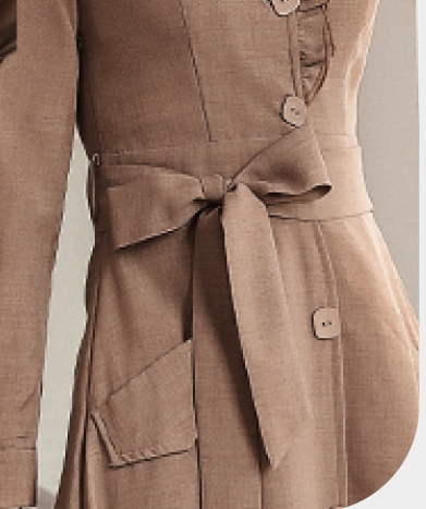 上身頃の開きをあえてボタンありなど、スカート部分に飾りボタンで開閉不可、細部にまでこだわりの詰まったアイテムです。