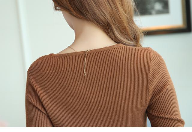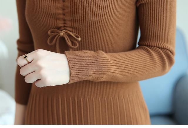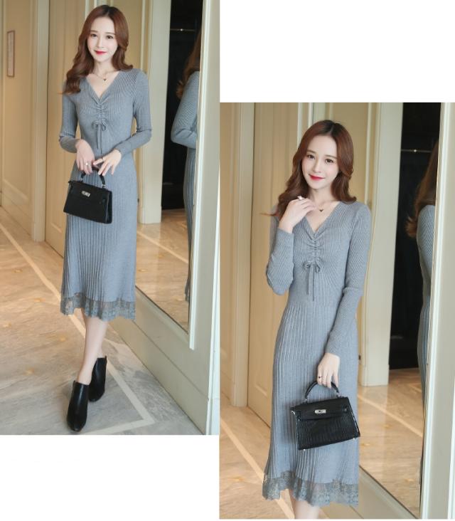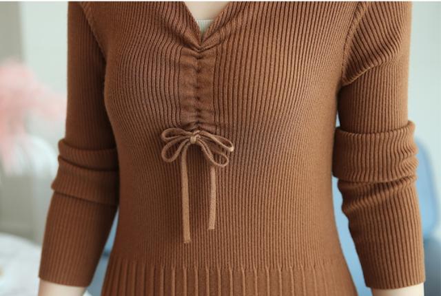 ボディーラインを強調してくれる、Vネックニットワンピースです。