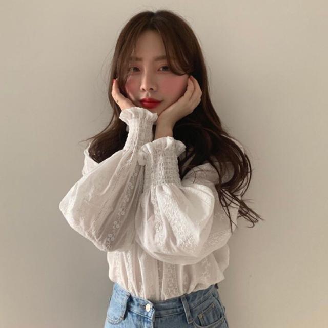 トップス シャツ ブラウス 袖あり 長袖 ハイネック 襟なし セミフレア ワイド レース 刺繍 ニット かわいい 大人可愛い きれいめ シンプル カジュアル 大人 上品 おしゃれ お洒落 かっこいい レトロ 大人可愛い 大人女子 こなれ感 ラブリー キュート ガーリー 個性的 クール