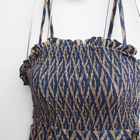 胸元のさりげないフリルがデコルテをきれいにみせてくれます。