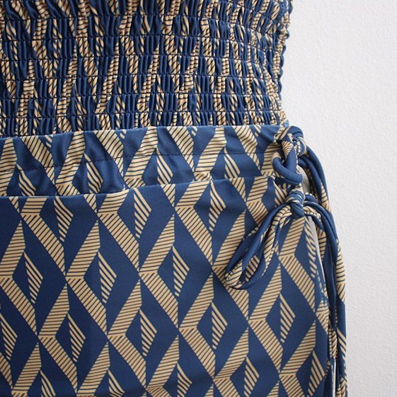 ウエスト部分の切り返しで体型カバーをしながら脚長効果。