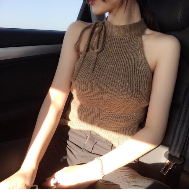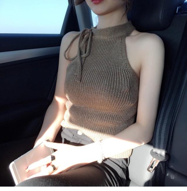 ホルターネック風 ハイネック サマーニット トップス ニットソー プルオーバー 袖なし ノースリーブ 襟なし ホルターネック リボン ニット かわいい 大人可愛い きれいめ シンプル カジュアル 大人 上品 おしゃれ かっこいい エキゾチック こなれ感 ラフ ラブリー キュート 個性的 クール セクシー 無地 夏 10代 20代 30代 40代 レディース デート お出かけ 女子会 休日 リゾート 旅行 着回し 普段使い 韓国系 コーデ スタイル モテ S M L ブラウン ゴールド ラメ