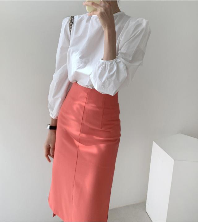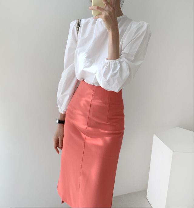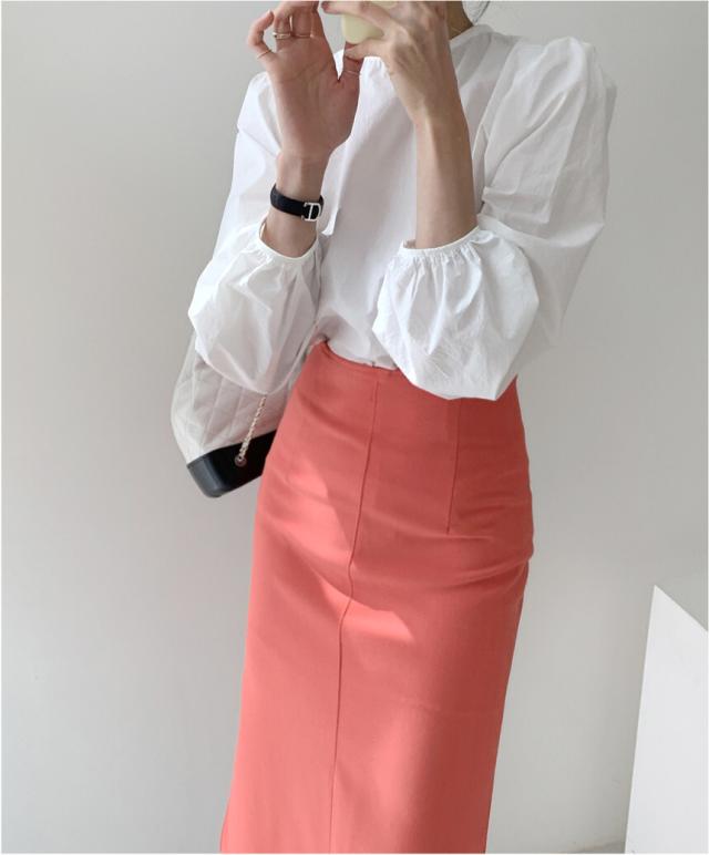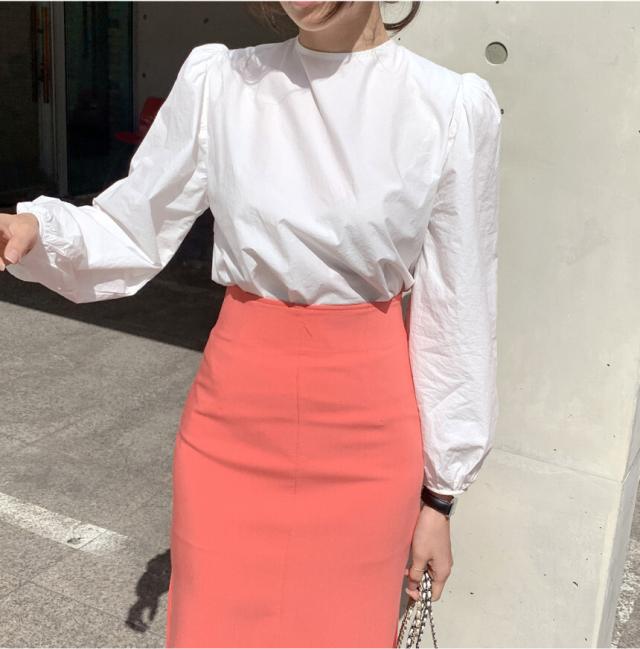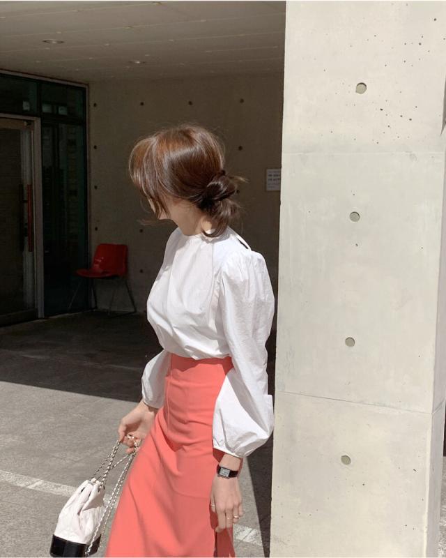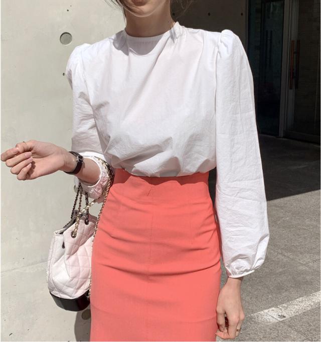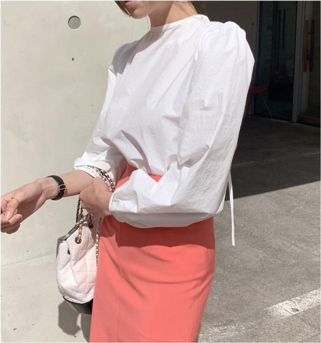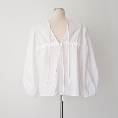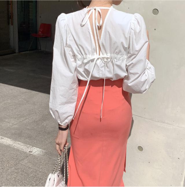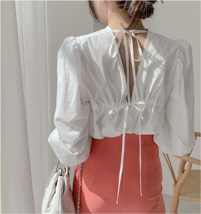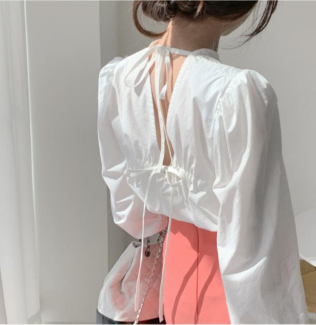 きれいめ ブラウス バッグリボン バッグオープン トップス 白シャツ 袖あり 長袖 ボリューム袖 パフスリーブ Uネック リボン バックリボン バックシャン バックコンシャス かわいい 大人可愛い シンプル カジュアル 大人 上品 おしゃれ 大人女子 こなれ感 ラブリー キュート ガーリー 個性的 モード系 モダン 存在感 無地 春 秋 10代 20代 30代 40代 オフィス ビジネス OL 通勤 デート お出かけ 女子会 休日 着回し 普段使い 韓国 オルチャン ファッション スタイル フリーサイズ