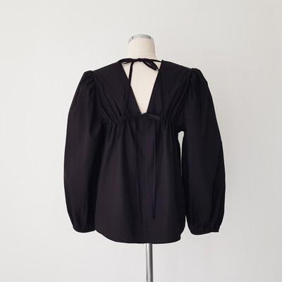 リボンが可憐な、オープンバックのコットンブラウス。
