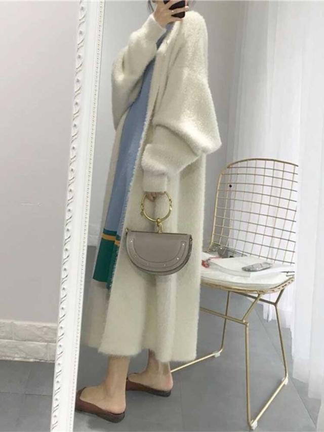 ふわふわ質感のロング丈のニットカーディガン。