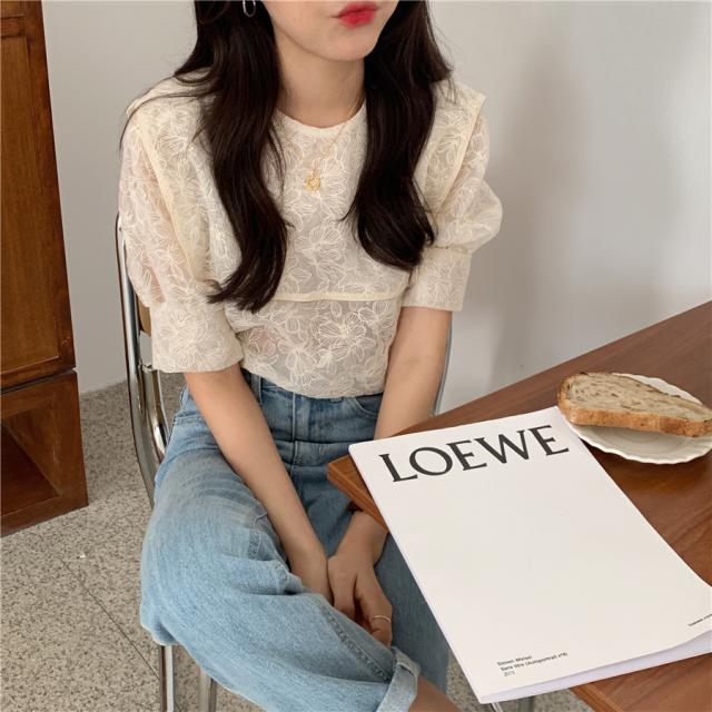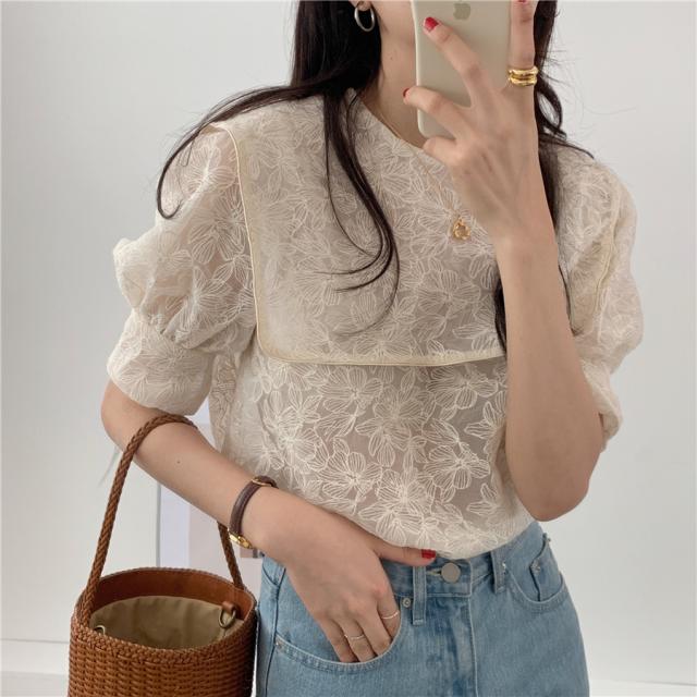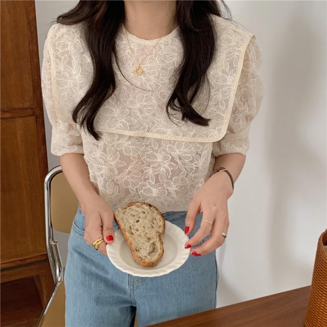 セーラーカラー シースルー ブラウス ケープ トップス シャツ プルオーバー 袖あり 半袖 五分袖 ボリューム袖 パフスリーブ Uネック 襟付き レース 刺繍 チュール シフォン かわいい 大人可愛い きれいめ シンプル カジュアル 大人 上品 おしゃれ アジアン 大人女子 こなれ感 ラフ ラブリー キュート ガーリー 花柄 フラワー 春 夏 10代 20代 30代 40代 レディース デート お出かけ 女子会 休日 着回し 普段使い 韓国系 コーデ スタイル モテ フリーサイズ ビッグサイズ ゆったり