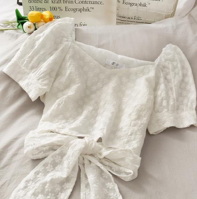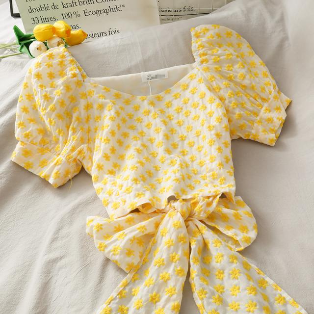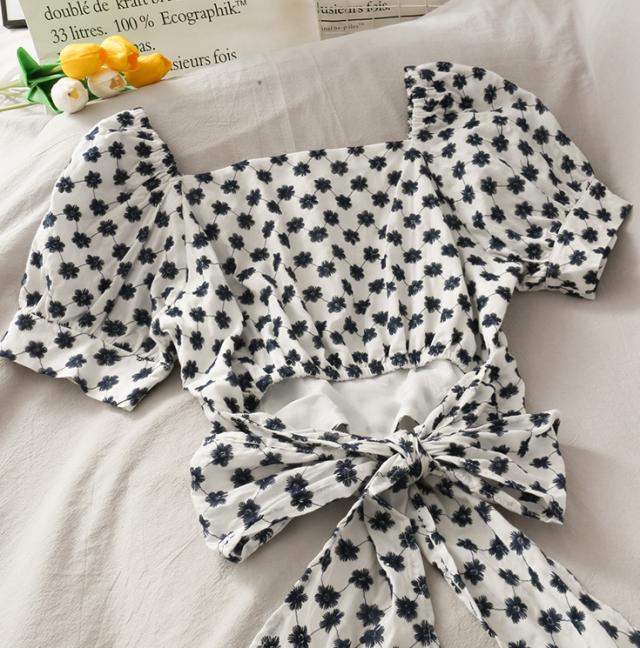 パフスリーブ リボン 小花柄 ガーリー トップス ブラウス カットソー ショート ショート丈 袖あり 半袖 Vネック 襟なし ウエストリボン バックリボン バックシャン バックコンシャス かわいい 大人可愛い カジュアル おしゃれ こなれ感 ラブリー キュート 個性的 セクシー 存在感 花柄 フラワー 夏 10代 20代 30代 レディース 女性用 デート お出かけ 女子会 お泊まり 休日 リゾート 旅行 海 着回し 普段使い 韓国系 コーデ スタイル モテ インスタ映え フリーサイズ 3色展開