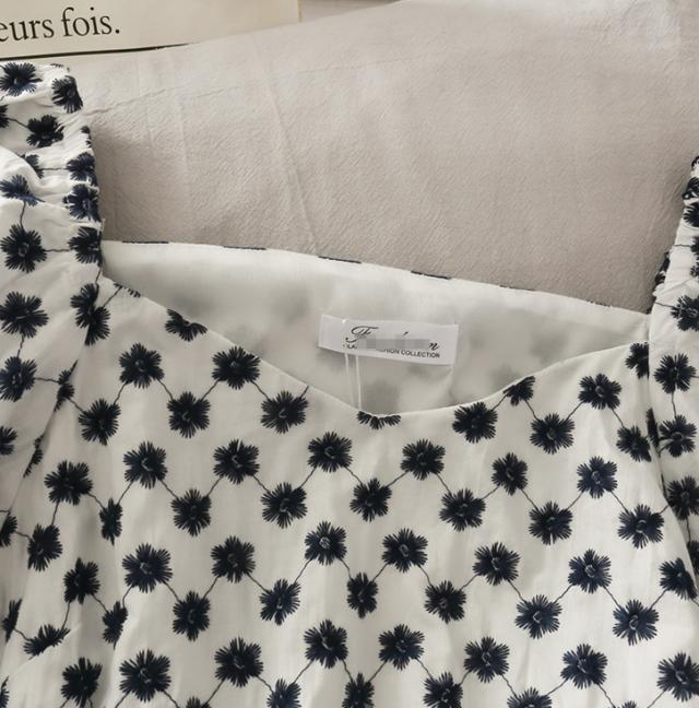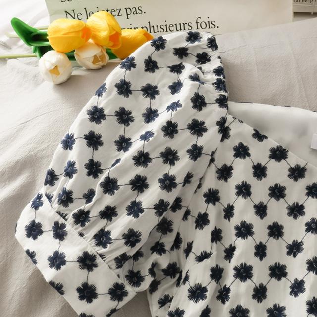 立体フラワー刺繍がキュートなパフスリーブトップス。