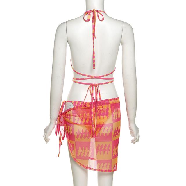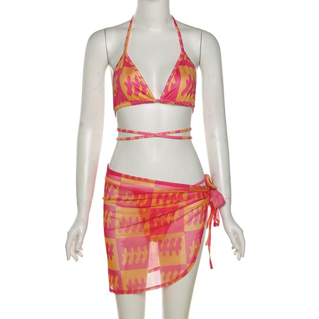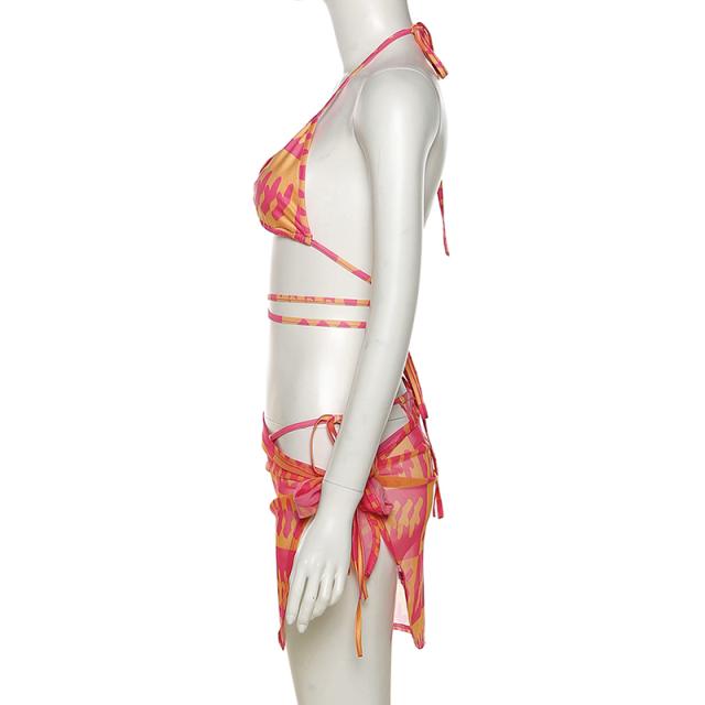 パレオ付き 水着 ビキニ スイムウェア 三角ビキニ ブラジリアンビキニ セクシービキニ セパレート ホルターネック 紐 三角 ブラジリアン クロス バックリボン スリット バックシャン バックコンシャス 胸元 谷間 谷間魅せ 盛れる セット 上下セット 3点セット スリーピース セクシー カジュアル 華やか 大人 大人っぽい おしゃれ 存在感 スタイリッシュ エスニック エキゾチック 幾何学模様 10代 20代 30代 40代 レディース 女性用 夏 海 ビーチ プール リゾート 旅行 体系カバー 高見え
