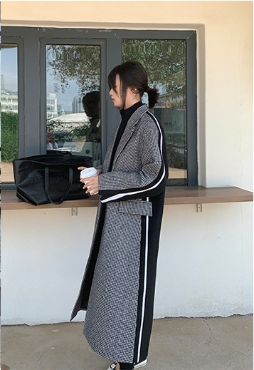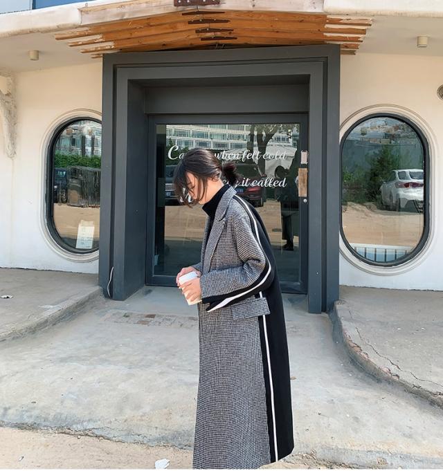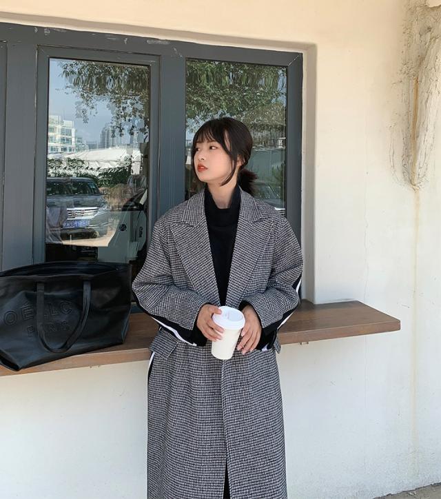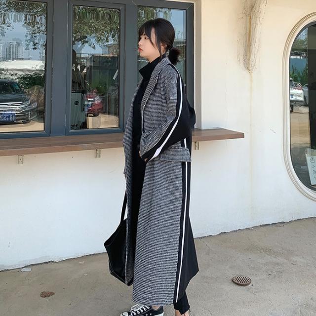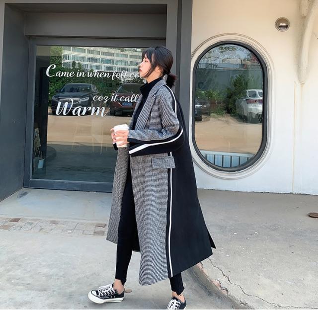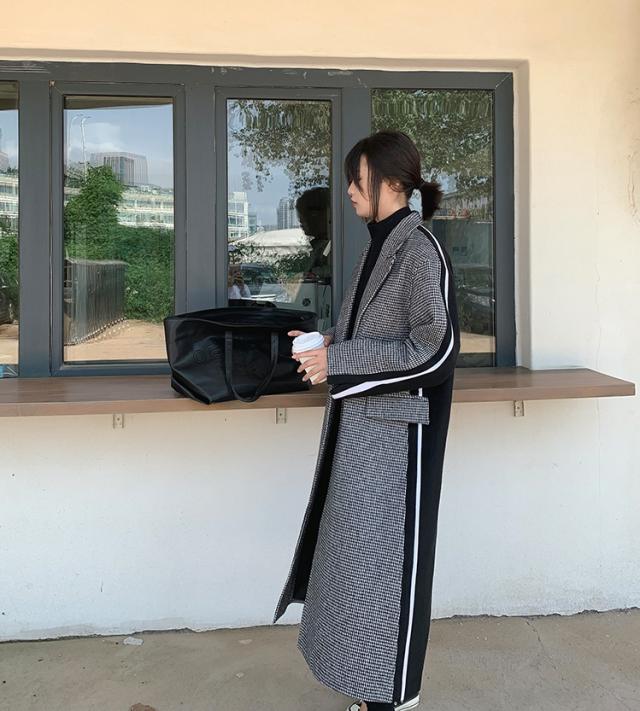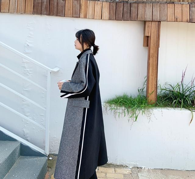 ロングコート 千鳥格子 バイカラー アウター コート チェスターコート トレンチコート ロング ロング丈 マキシ マキシ丈 9分丈 アンクル丈 袖あり 長袖 Vネック 襟付き ストレート 切り替えデザイン バックシャン ポケット 前開き かわいい きれいめ シンプル カジュアル 大人 上品 おしゃれ かっこいい こなれ感 マニッシュ ボーイッシュ 個性的 クール モード系 主役級 存在感 冬 10代 20代 30代 40代 レディース 女性用 通勤 通学 デート お出かけ 休日 韓国系 暖かい 防寒
