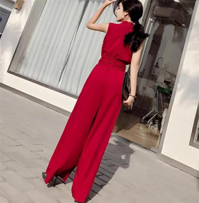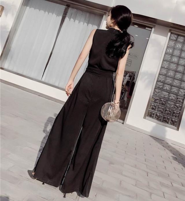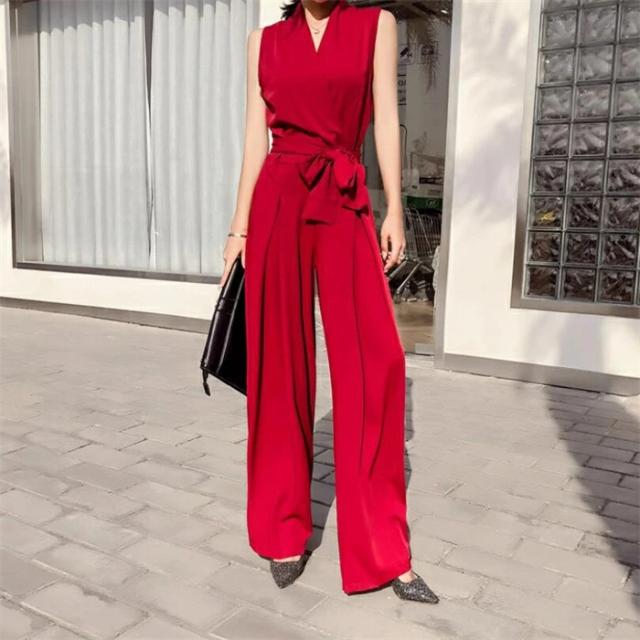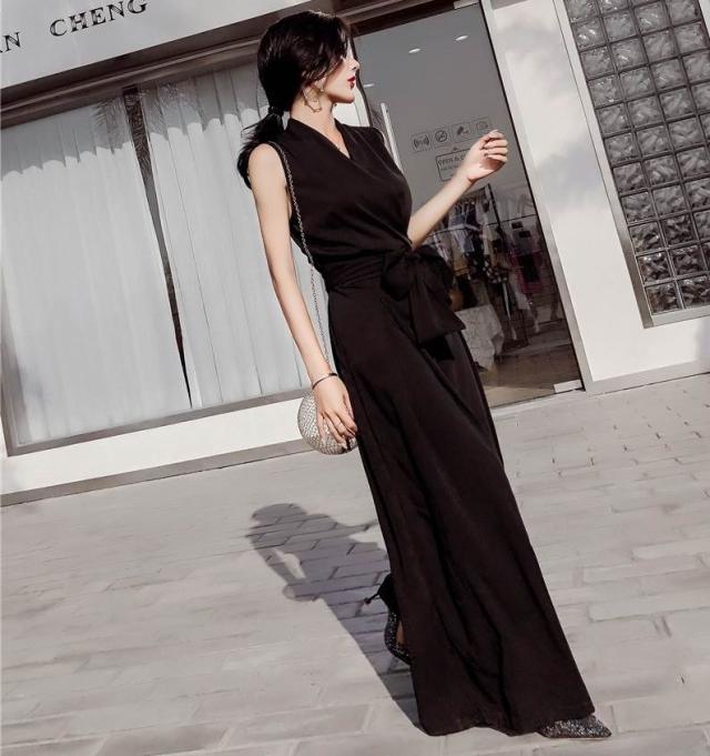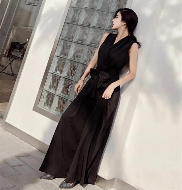 オールインワン ジャンプスーツ ドレス セットアップ ワイドパンツ ロング丈 マキシ マキシ丈 アンクル丈 袖なし ノースリーブ カシュクール 襟なし ワイド ウエストリボン 上下セット 大人可愛い きれいめ シンプル 大人 上品 おしゃれ かっこいい 大人女子 こなれ感