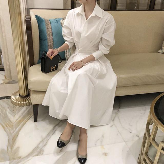 鎖骨や首が美しく見える首元の開き具合がポイントのクラシカルワンピース。