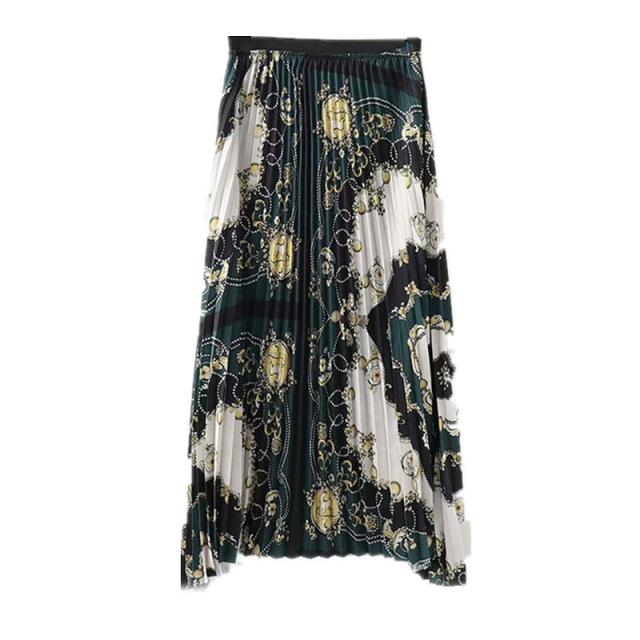 プリーツスカート ボトムス ロング丈 ミドル丈 プリーツ ウエストゴム かわいい 大人可愛い きれいめ ヨーロピアン シンプル カジュアル 大人 上品 おしゃれ かっこいい レトロ 大人女子 こなれ感 ラフ エレガント 花柄 チェーン柄 スカーフ柄 プリント 春 秋 10代 20代 30代 40代 レデイース オフィス デート お出かけ 女子会 着回し 普段使い 韓国系 オルチャン ファッション コーデ スタイル 防寒 モテ 体型カバー トレンド 流行 インスタ映え S M L 緑 グリーン