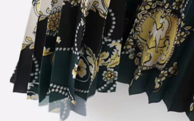 スカーフ柄がおしゃれなプリーツスカート。