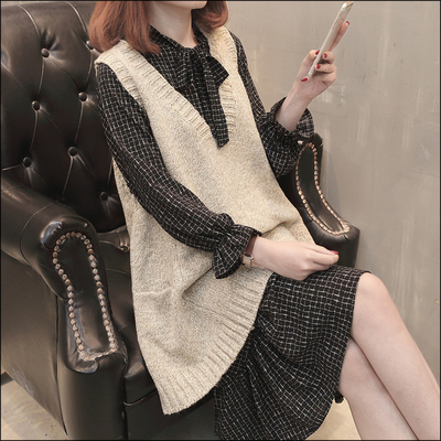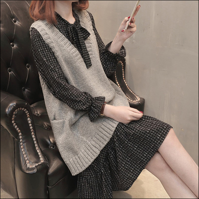 ニットベストとワンピースの2点セット。