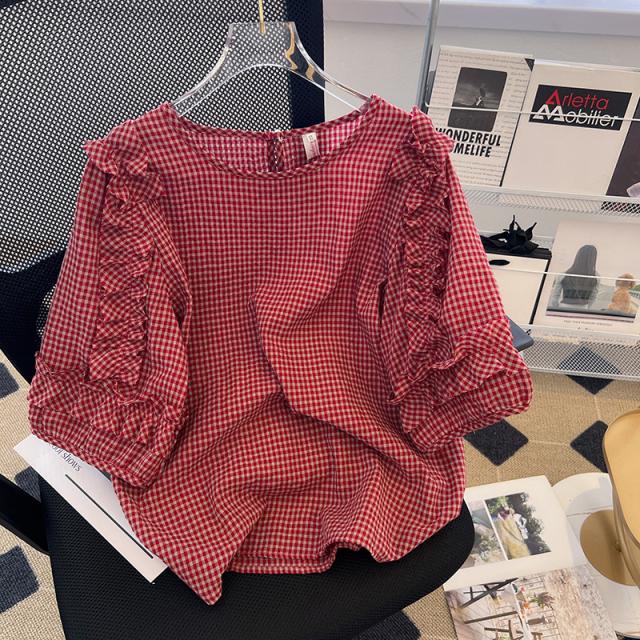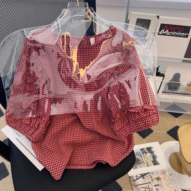 ギンガムチェック フレア袖 体系カバー ブラウス トップス プルオーバー 袖あり Uネック ラウンドネック クルーネック 襟なし かわいい 大人可愛い きれいめ カジュアル 大人 上品 おしゃれ 大人女子 こなれ感 ラブリー キュート ガーリー 個性的 主役級 存在感 抜け感 チェック柄 格子柄 10代 20代 30代 40代 50代 60代 レディース 通学 デート お出かけ 休日 旅行 着回し 普段使い 韓国系 ファッション コーデ モテ 体系カバー トレンド 流行 インスタ映え 大きいサイズ